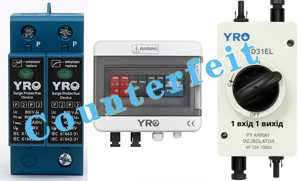 เมื่อเร็วๆ นี้ เราได้รับการตอบรับจากลูกค้าบ่อยครั้งว่าพบผลิตภัณฑ์ลอกเลียนแบบในผลิตภัณฑ์ YRO ที่พวกเขาซื้อ ซึ่งเกี่ยวข้องกับสินค้าหลายรายการ เช่น เซอร์กิตเบรกเกอร์ กล่องรวมสัญญาณ และอุปกรณ์ป้องกันไฟกระชาก